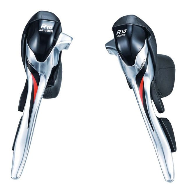 Klamkomanetki MICROSHIFT R10, Para, 10.rzędowe(2x10), Kompatybilne z Shimano, Dual Control, Srebrne