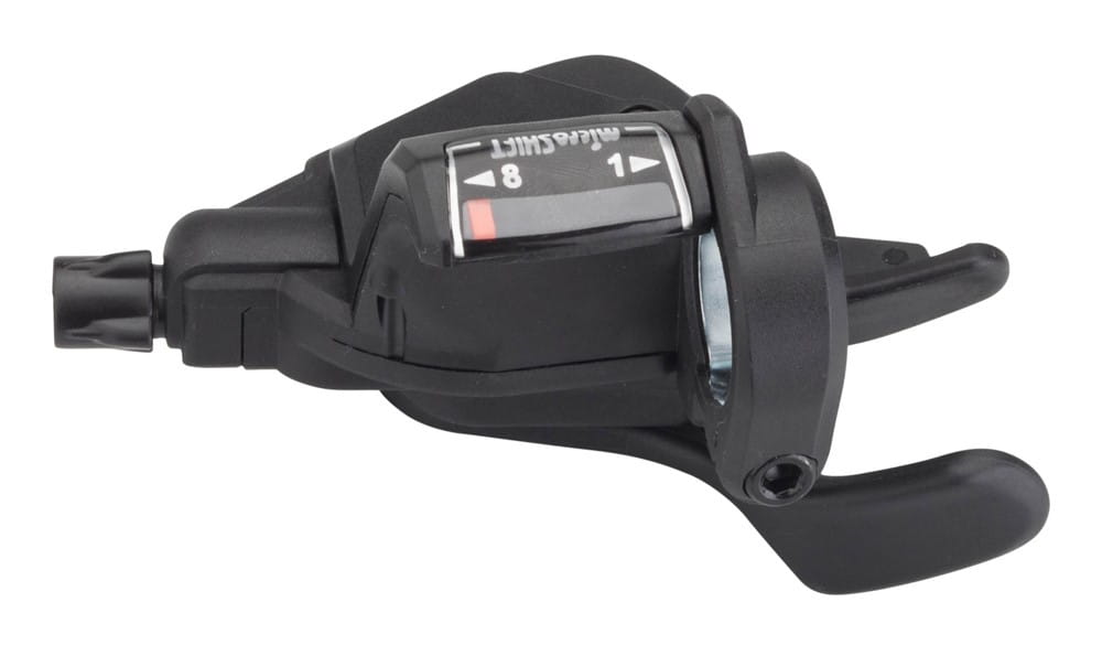 Manetka MICROSHIFT MEZZO, Prawa, 8.rzędowa, Kompatybilna z Shimano, Thumb Tap, Optyczny Wskaźnik Przełożeń