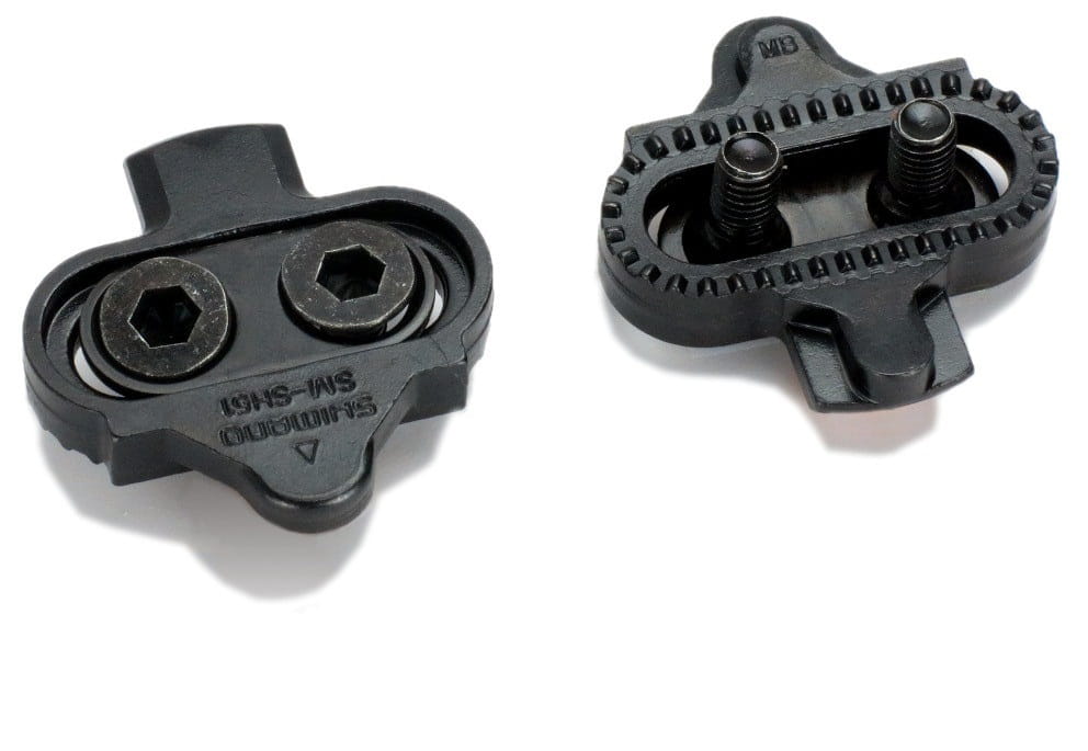 Bloki do pedałów SPD firmy Shimano oraz innych kompatybilnych z tym systemem.