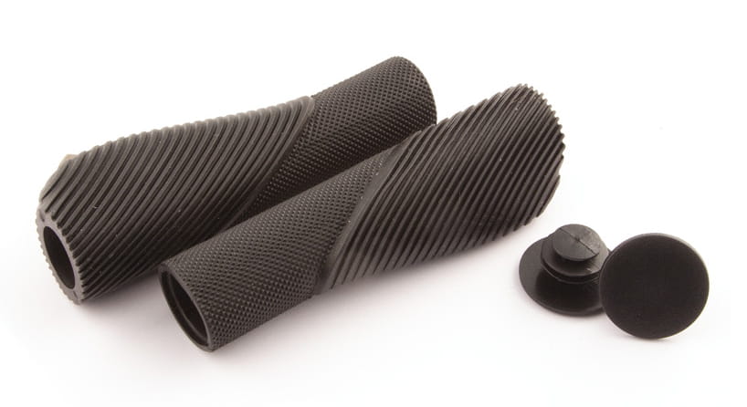 Chwyty kierownicy wykonane z gumy elastomerowej dla uzyskania unikalnego uczucia miękkości, przy jednoczesnym utrzymaniu trwałości. W zestawie korki do chwytów.