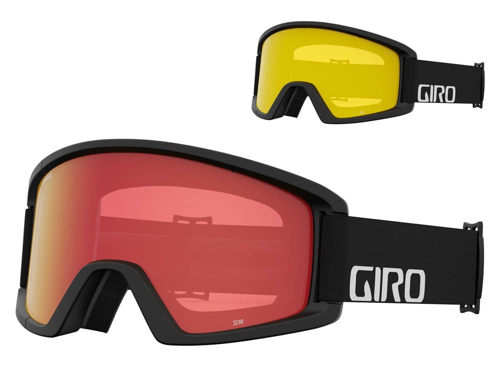 Gogle zimowe GIRO SEMI BLACK WORDMARK (Szyba lustrzana kolorowa AMBER SCARLET 39% S2 + Szyba kolorowa YELLOW 84% S0)