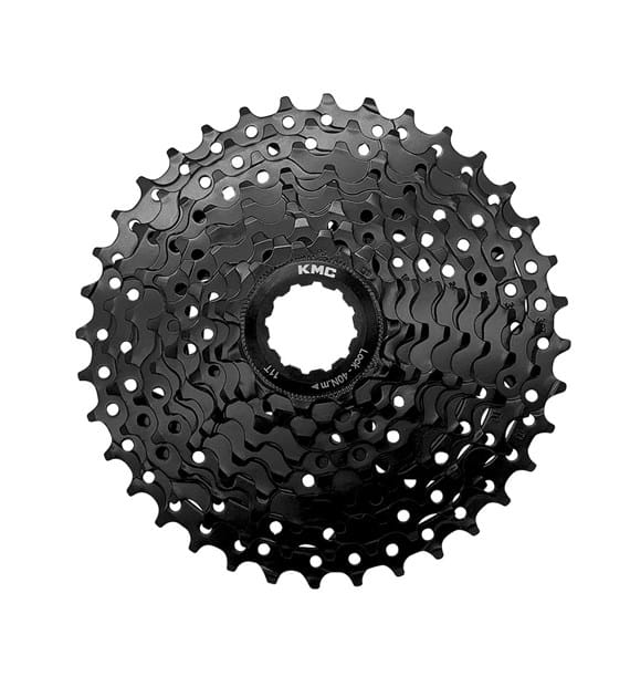 9-biegowa kaseta KMC REACT zapewnia dobrą wydajność zmiany biegów, podczas zmiany biegu na wyższy i niższy dzięki starannie zintegrowanym wspomaganiom podjazdowym. Wizualnie kaseta naprawdę przyciąga wzrok dzięki czarnej powłoce na wszystkich zębatkach, a dzięki solidnej konstrukcji wykonanej ze stali o wysokiej wytrzymałości idealnie nadaje się również do stosowania w rowerach elektrycznych.