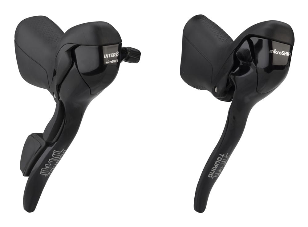 Klamkomanetki MICROSHIFT INTER 8 TOURING, Para, 8.rzędowe, Kompatybilne z Shimano, Dual Control, Lewa Klamka Tylko z Dźwignią Hamulca, Czarne