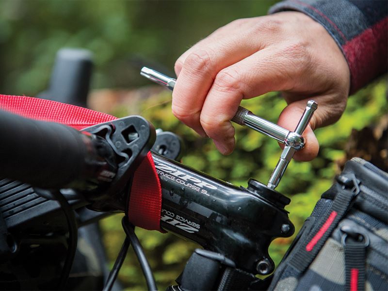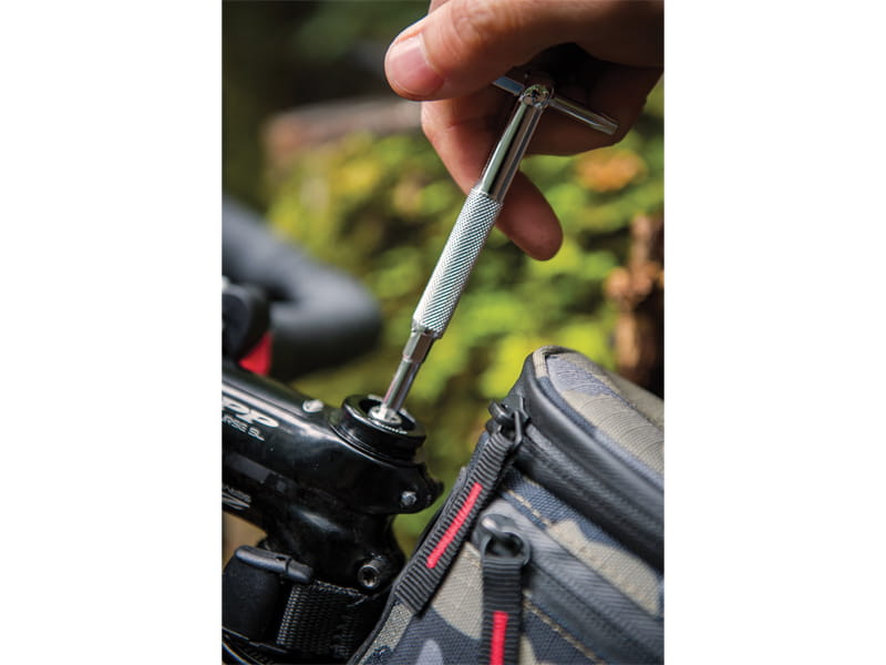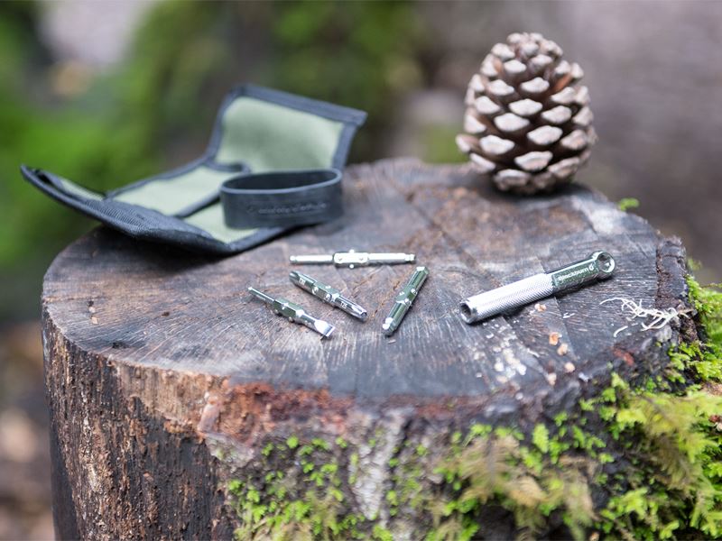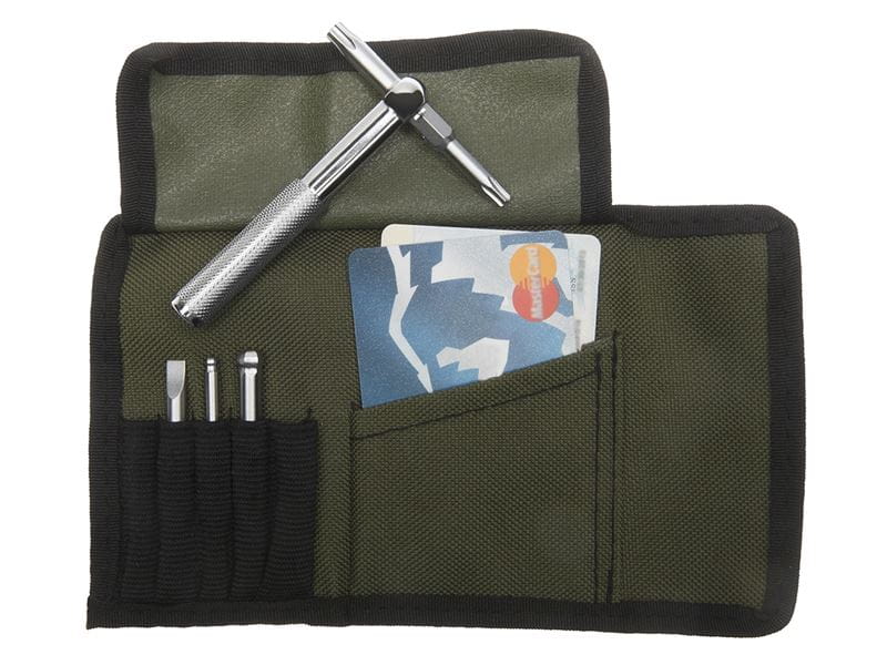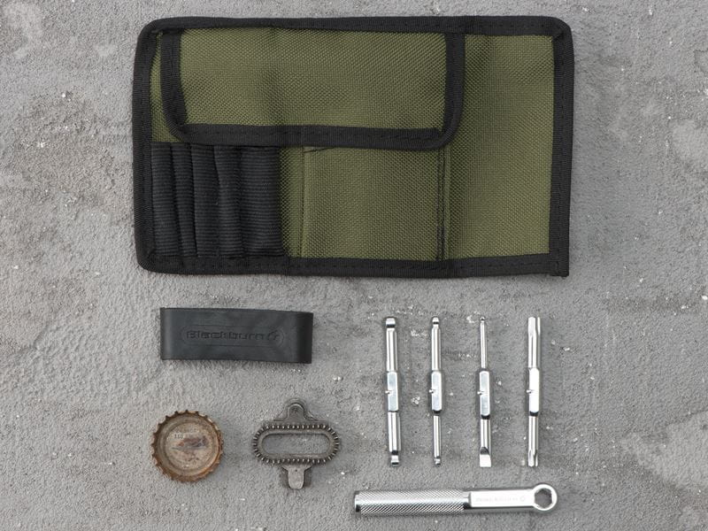 Zawiera najbardziej potrzebne narzędzia do naprawy roweru w stylowym nylonowym pokrowcu.