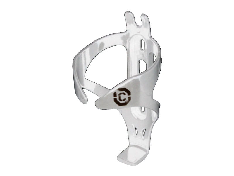 Lekki koszyk na bidon, wykonany z poliwęglanu. Uniwersalne mocowanie. Zestaw zawiera śrubki montażowe.