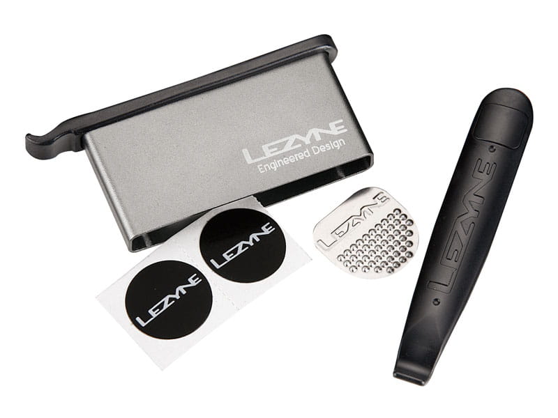 Łatki do dętek LEZYNE LEVER KIT pudełko 2xłyżki, 6xłatki samoprzylepne szare
