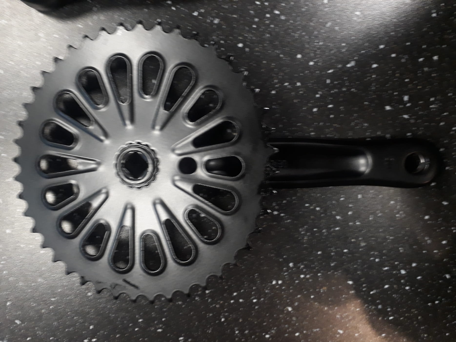 Mechanizm korbowy, zdjęty z roweru Plumbike Grand Chopper