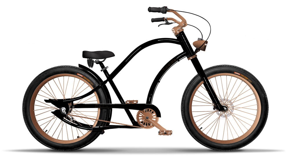 Miedziany, czarny 3D. Opony w kolorze czarnym, chwyty i siodło w kolorze czarnym.