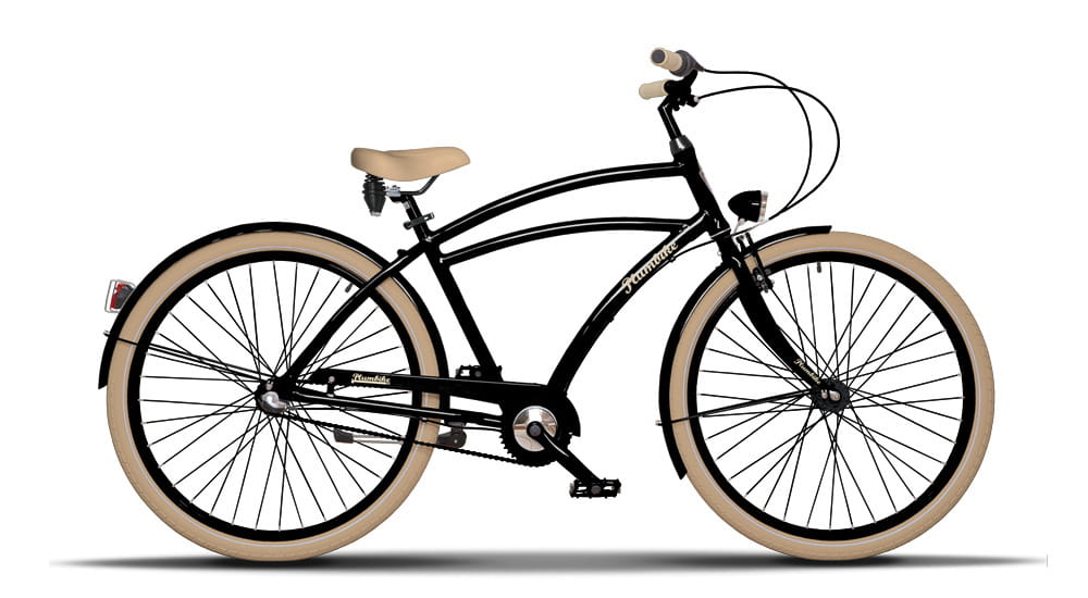 Czarny połysk. Opony w kolorze ecru, chwyty i siodło w kolorze ecru.