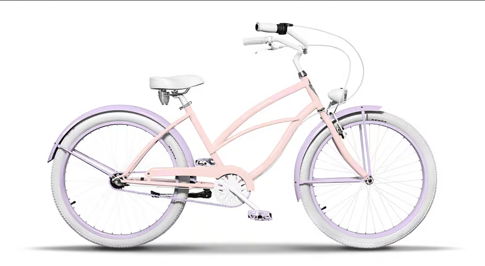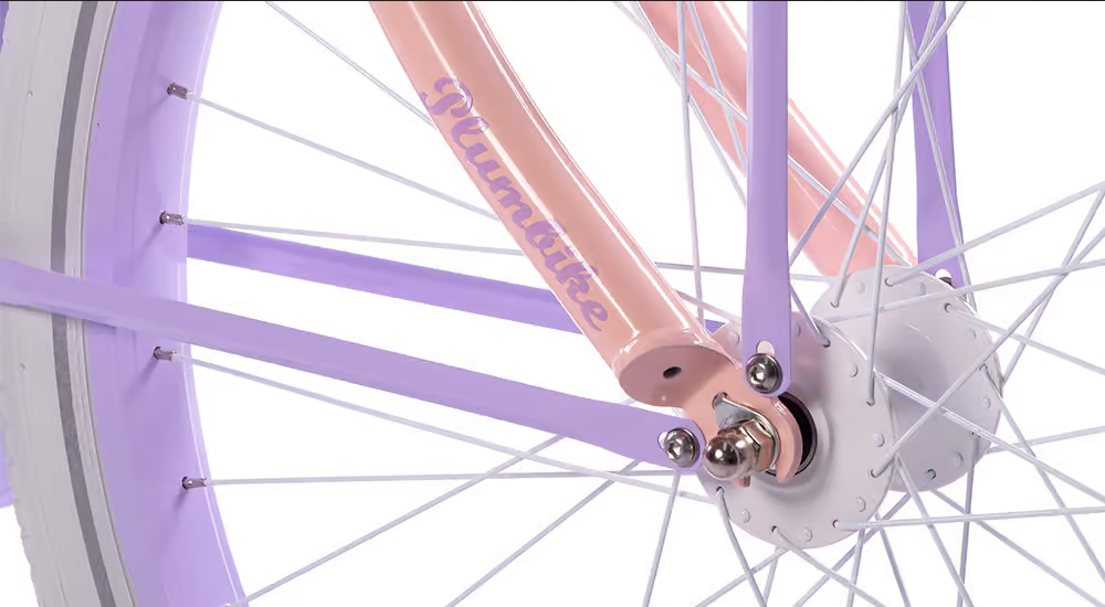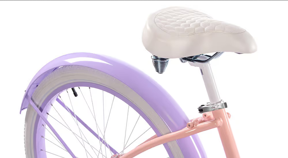Róż wenecki, jasny fiolet, biały. Opony w kolorze białym, chwyty i siodło w kolorze białym.