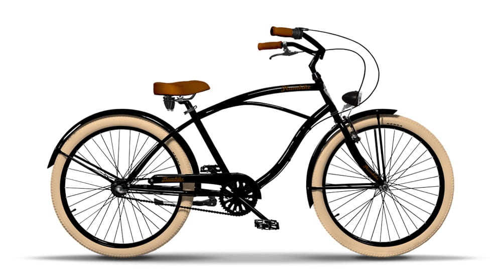 Czarny matowy. Opony w kolorze ecru, chwyty i siodło w kolorze brązowym.