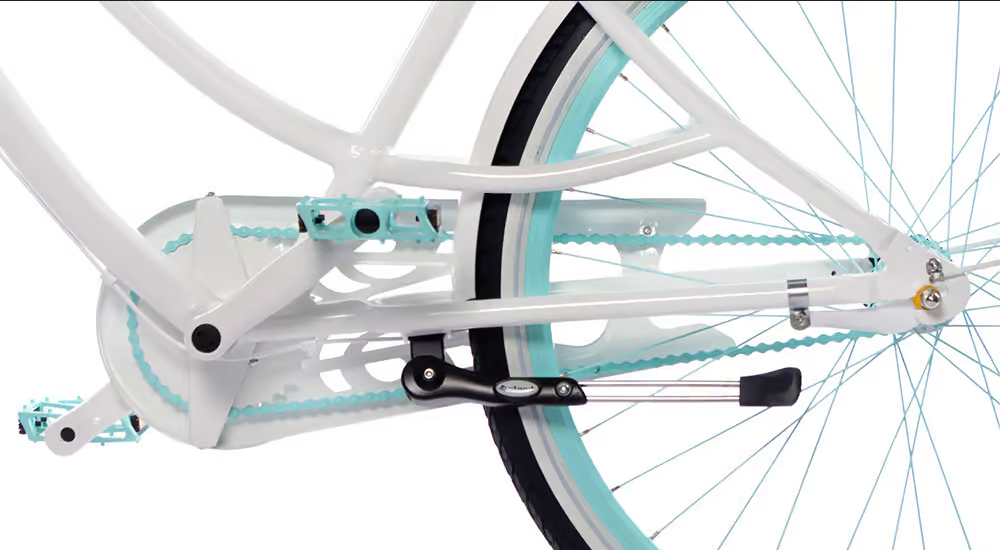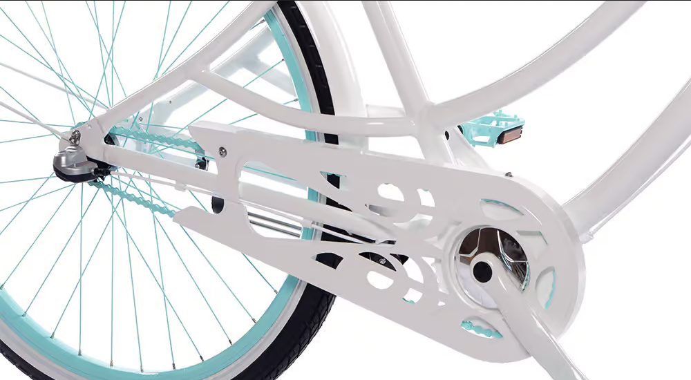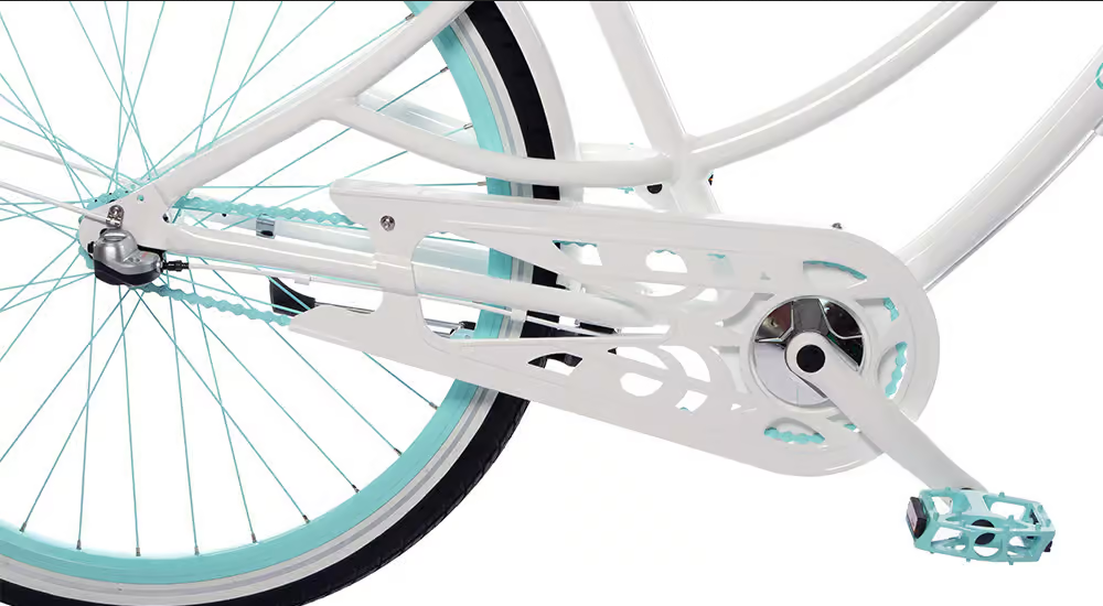 Rama, widelec, łańcuch, osłona łańcucha, kierownica, sztyca, korba, zębatka, błotniki, obręcze oraz szprychy wraz z piastami.