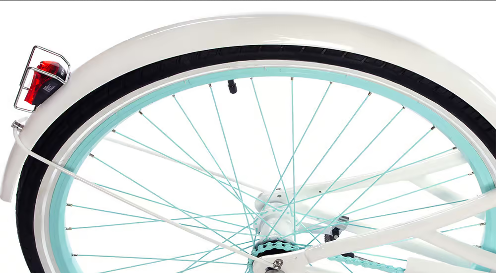 Biały, miętowy. Opony w kolorze biało- czarnym, chwyty i siodło w kolorze białym.