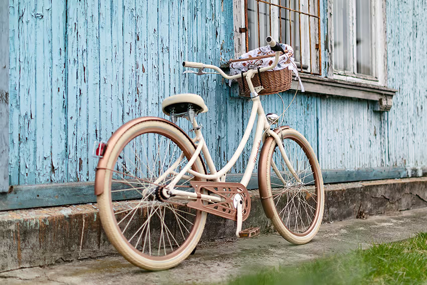 Ecru, miedziany. Opony w kolorze ecru, chwyty i siodło w kolorze ecru.