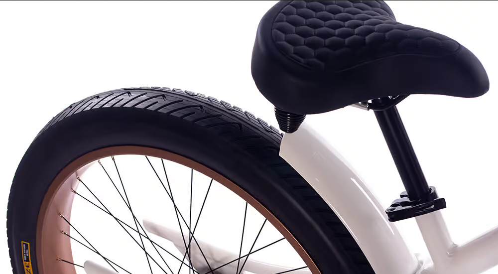 Biały, miedziany, czarny mat. Opony w kolorze czarnym, chwyty i siodło w kolorze czarnym.