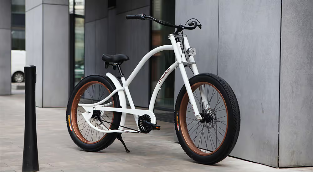 - szerokie opony 3-calowe, umożliwiające jazdę także poza utwardzonymi drogami