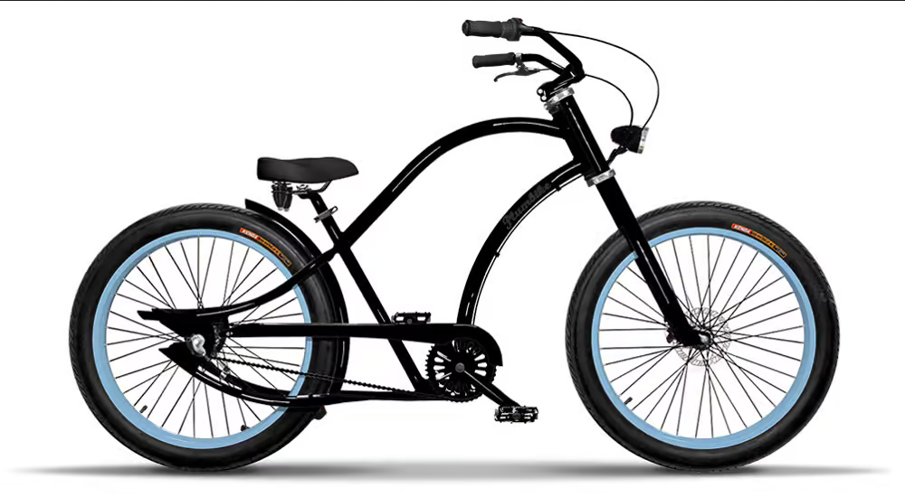 - szerokie opony 3-calowe, umożliwiające jazdę także poza utwardzonymi drogami