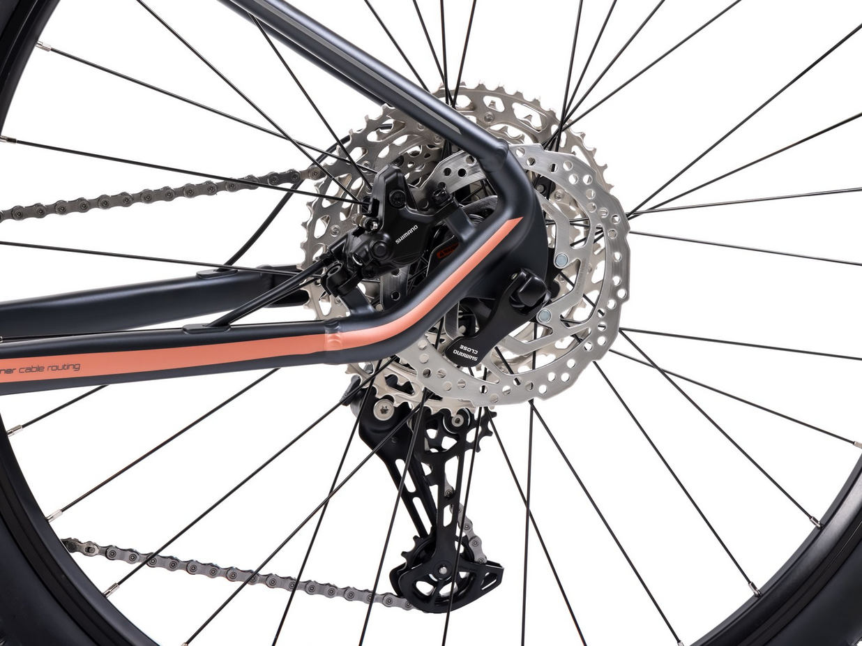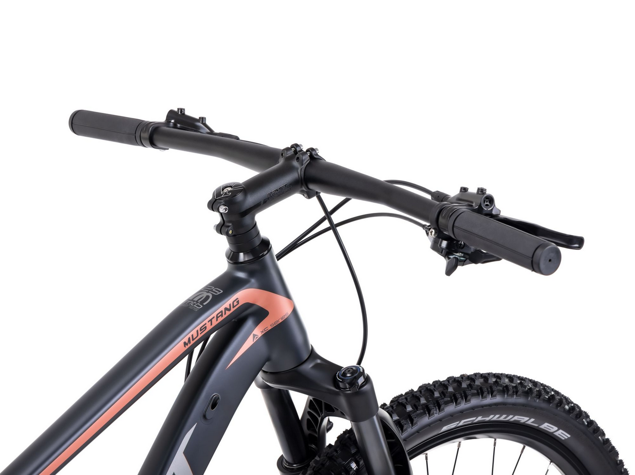 Ten wszechstronny model zbudowany został z podzespołów, które przez długi czas będą cieszyć niezawodnością. Dzielność terenową to m.in. zasługa przedniego amortyzatora Rock Shox Judy, którego 100 mm ugięcia wybiera wszystkie wyboje. Model wyposażony został w 12 rzędowy napęd Shimano. Przerzutka tylna Deore doskonale współgra z kasetą od dużym zakresie przełożeń, dzięki czemu zmiana biegów przebiega szybko i płynnie. Ogromny wpływ na bezpieczeństwo jazdy ma właściwy dobór hamulców. W Mustangu M8 postawiliśmy na sprawdzony zestaw Shimano oparty o działanie dwutłoczkowych zacisków. Rower toczy się lekko dzięki solidnemu zestawowi aluminiowych kół, które w połączeniu z oponami Michelin Country Grip cechują się bardzo dobrymi właściwościami jezdnymi. Model występuje w 3 rozmiarach ram.