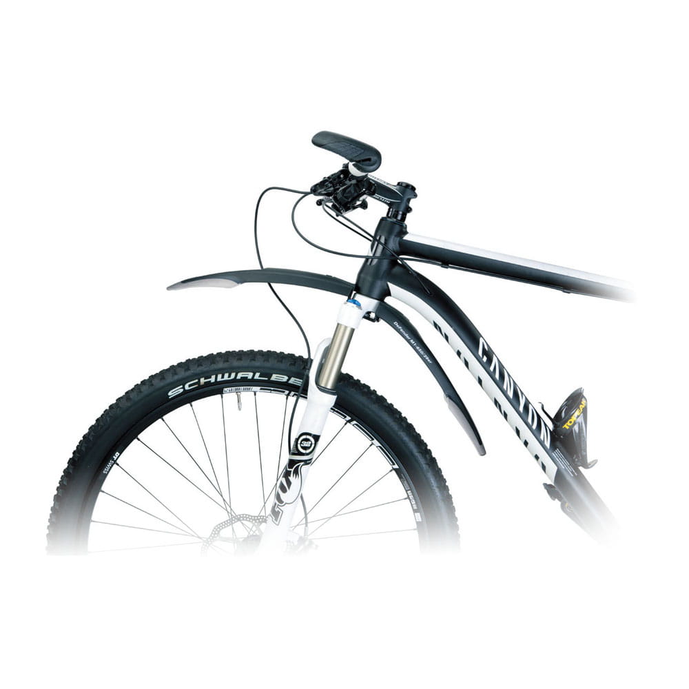 Kompaktowe błotniki MTB z systemem szybkiego uwalniania, ktore można zainstalować i zdjąć w ciągu kilku sekund. System szybkiego zwalniania przedniego błotnika umożliwia bezproblemową integrację z większością widelców. Zaczep do wspornika siodła ma kilka piwotów dla doskonałej regulacji i ochrony. Sztywna i lekka konstrukcja jest dość elastyczna dla lepszej trwałości. Polerowany spód ma na celu ochronę przed gromadzeniem się brudu i ułatwia czyszczenie.